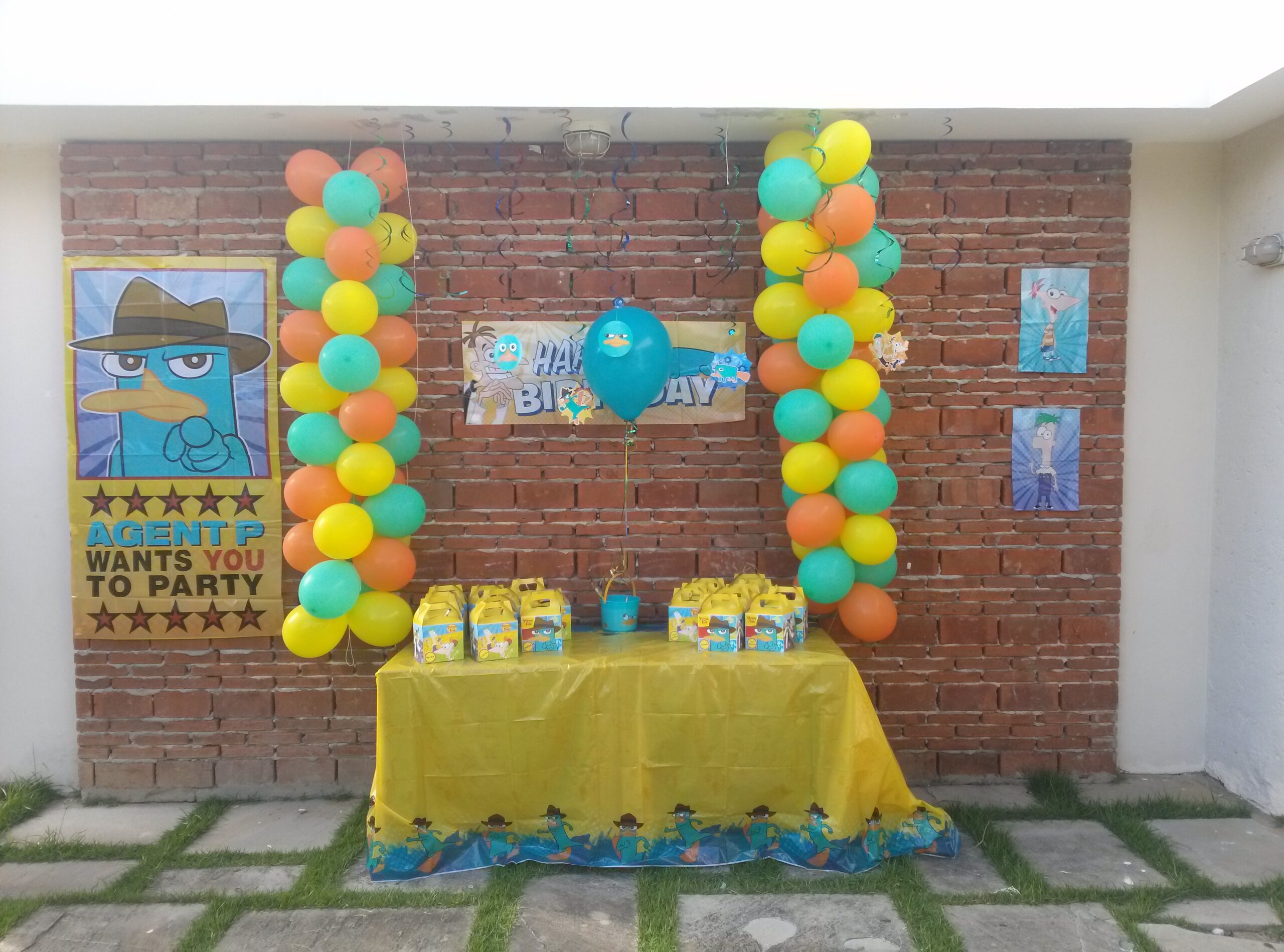 Decoración colorida con motivo cumpleaño Agente P